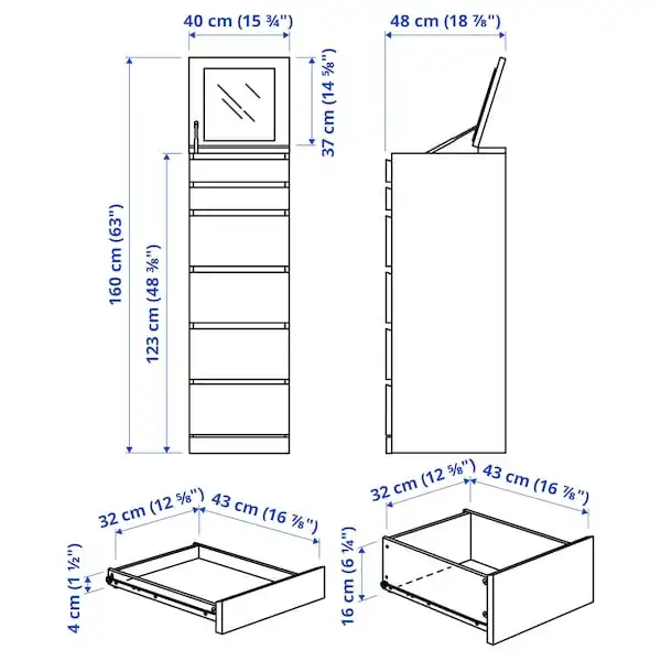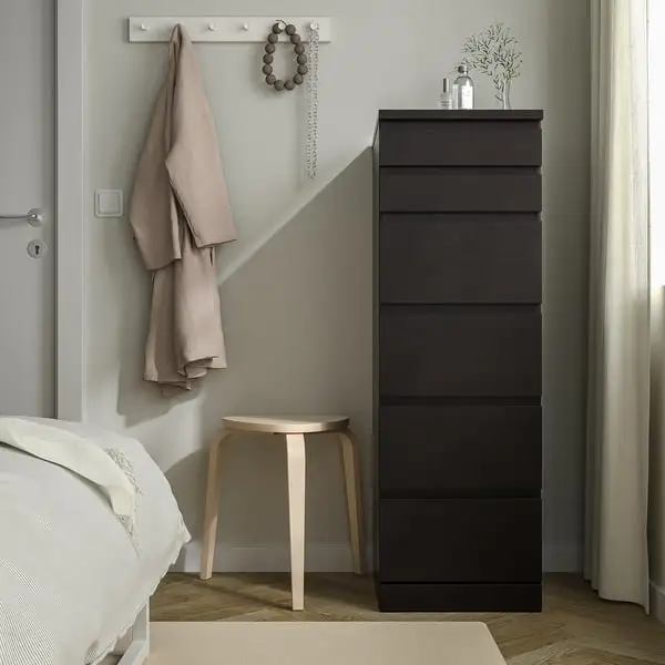 A clean expression that fits right in, in the bedroom or wherever you place it. Smooth-running drawers and in a choice of finishes – pick your favourite. Psst! Please attach to the wall.