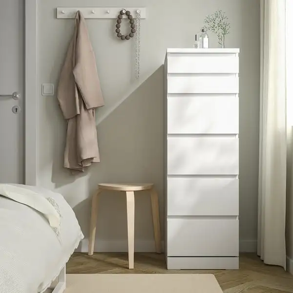 A clean expression that fits right in, in the bedroom or wherever you place it. Smooth-running drawers and in a choice of finishes – pick your favourite. Psst! Please attach to the wall.