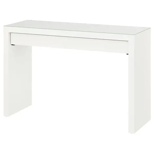 It’s really a dressing table – with space for make-up and jewellery inside. But, works just as well as a desk, a place to unload keys or mail in the entrance or to pile magazines behind the couch.