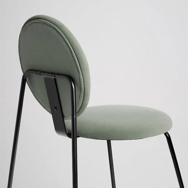 Here you sit comfy on a sturdy metal frame where the seat and backrest look like thin chocolate wafers covered with a durable velvet fabric. Just as enticing as candy and simple to assemble. What a combo!