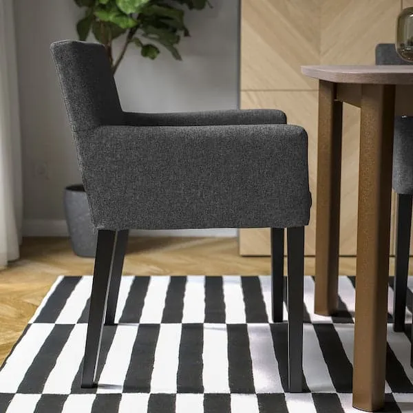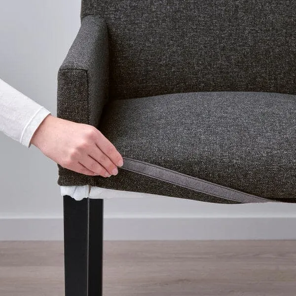 High back, armrests and a sprung seat with foam padding - this chair is the quintessence of comfort. The dark grey cover is easy to remove and wash, and also easy to change when you want to renew the style of the chair.