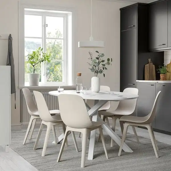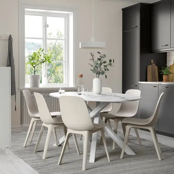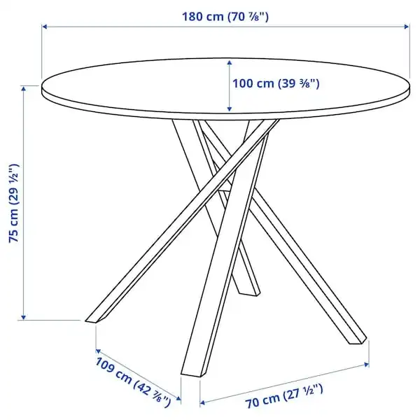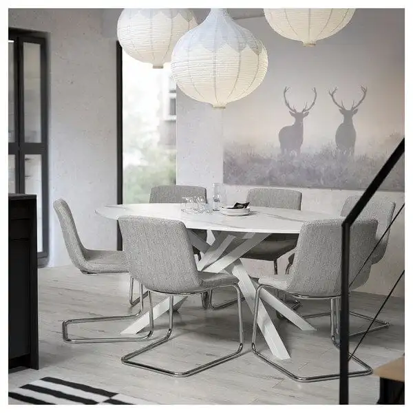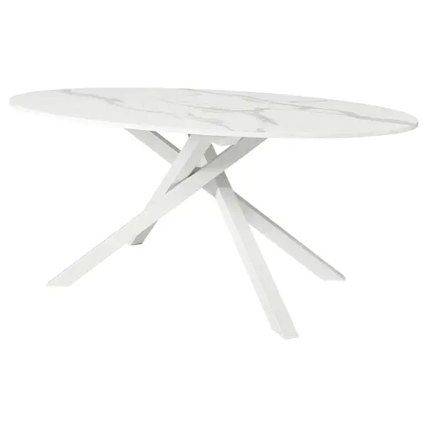 Sturdy construction with metal criss-crossed legs create a modern expression full of character. The table goes just as well in the kitchen as in the living room – and the oval shape makes room for many!