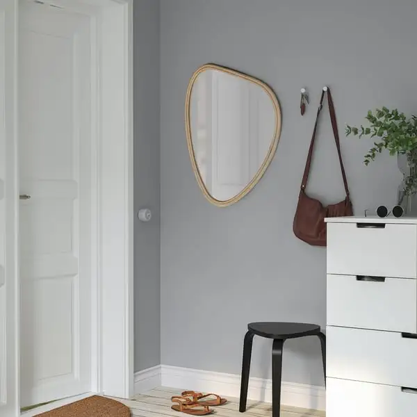 The organic shape of this mirror framed by rattan is inspired by the interior design style called Japandi – a nice unity of Scandinavian design and Japanese aesthetics with a minimalist expression.