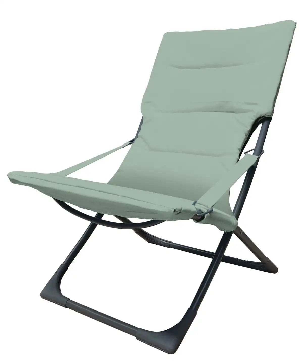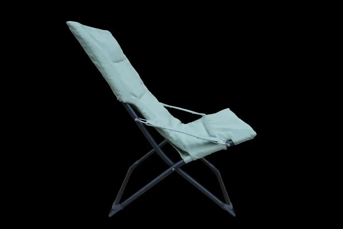 Marsella folding deckchair with steel arms and green polyester seatIdeal for spending long days outdoors and tastefully decorating your outdoor space. Can be easily placed on a small patio, garden or balconyThe deckchair can be folded for easy storage, takes up little space when not in use. Lightweight and easy to fold for transport and storage.The padded seat provides maximum comfort.