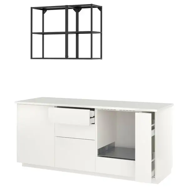 A functional kitchen with an easy-to-navigate layout. Open storage keeps everyday items within convenient reach and lets you show off your style, while drawers and cabinets hide the rest.