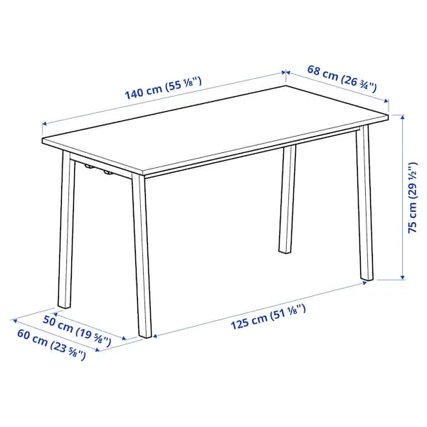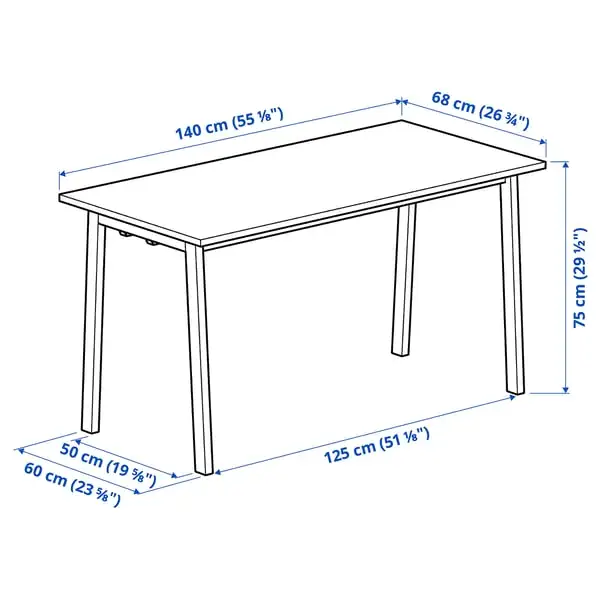 MITTZON conference table, birch veneer/white, 68x140 cm