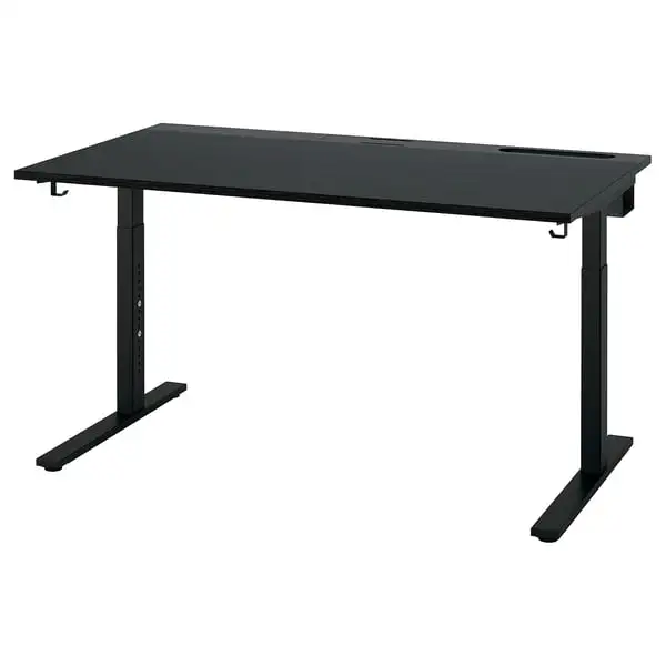 MITTZON desk, black stained ash veneer/black, 140x80 cm