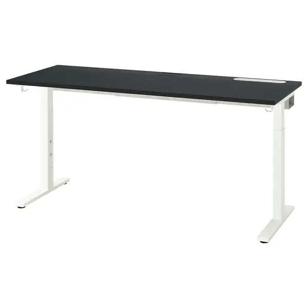 MITTZON desk, black stained ash veneer/black white, 160x60 cm