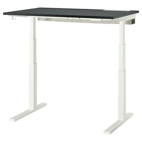 MITTZON desk sit/stand, electric black stained ash veneer/black white, 120x80 cm