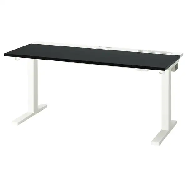 MITTZON desk sit/stand, electric black stained ash veneer/white, 140x60 cm