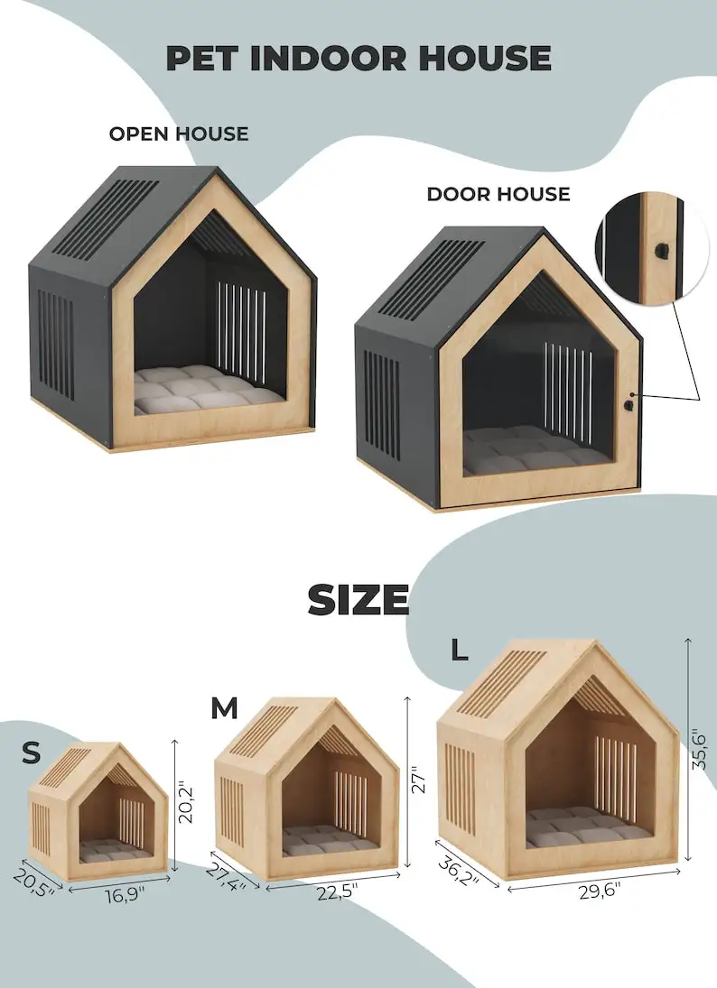 Designed for pet owners who value aesthetics and functionality, this dog house provides a secure and comfortable space for dogs of all sizes. It's ideal for those seeking a stylish alternative to traditional metal crates, ensuring your pet feels at home while enhancing your interior design.