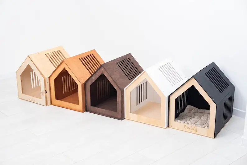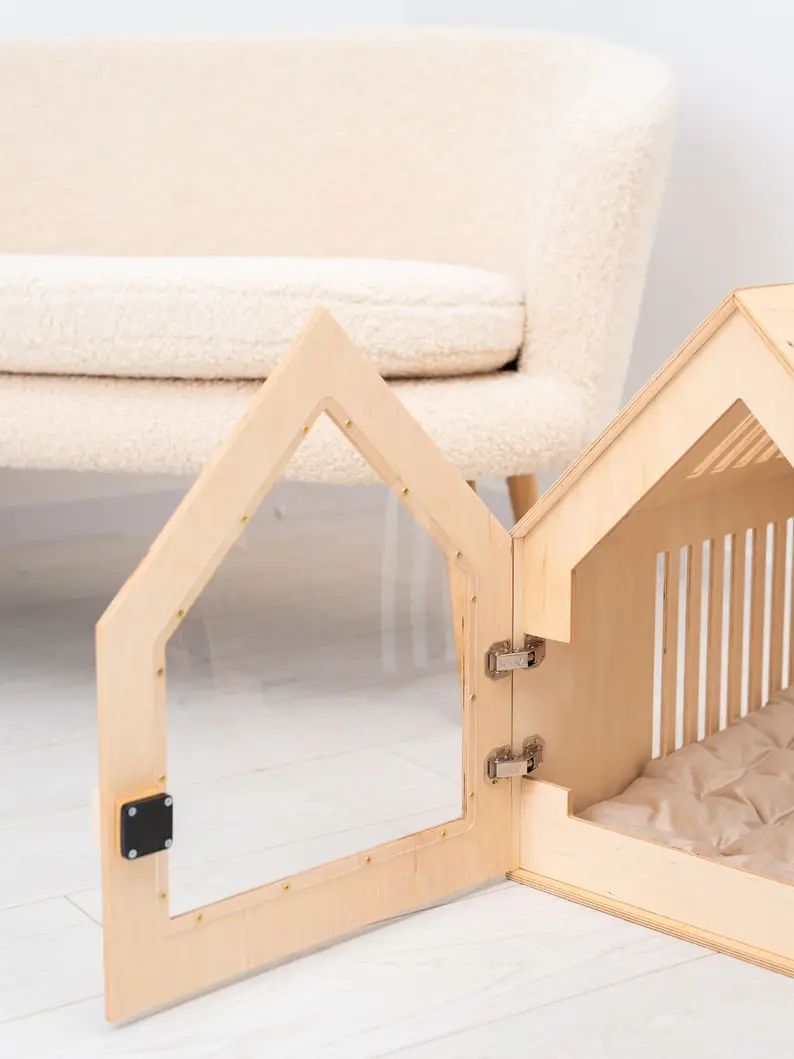 Modern Wooden Dog House – the perfect blend of style and comfort for your beloved pet. This handcrafted indoor dog crate serves as both a cozy retreat for your dog and an elegant piece of furniture that complements your home décor.