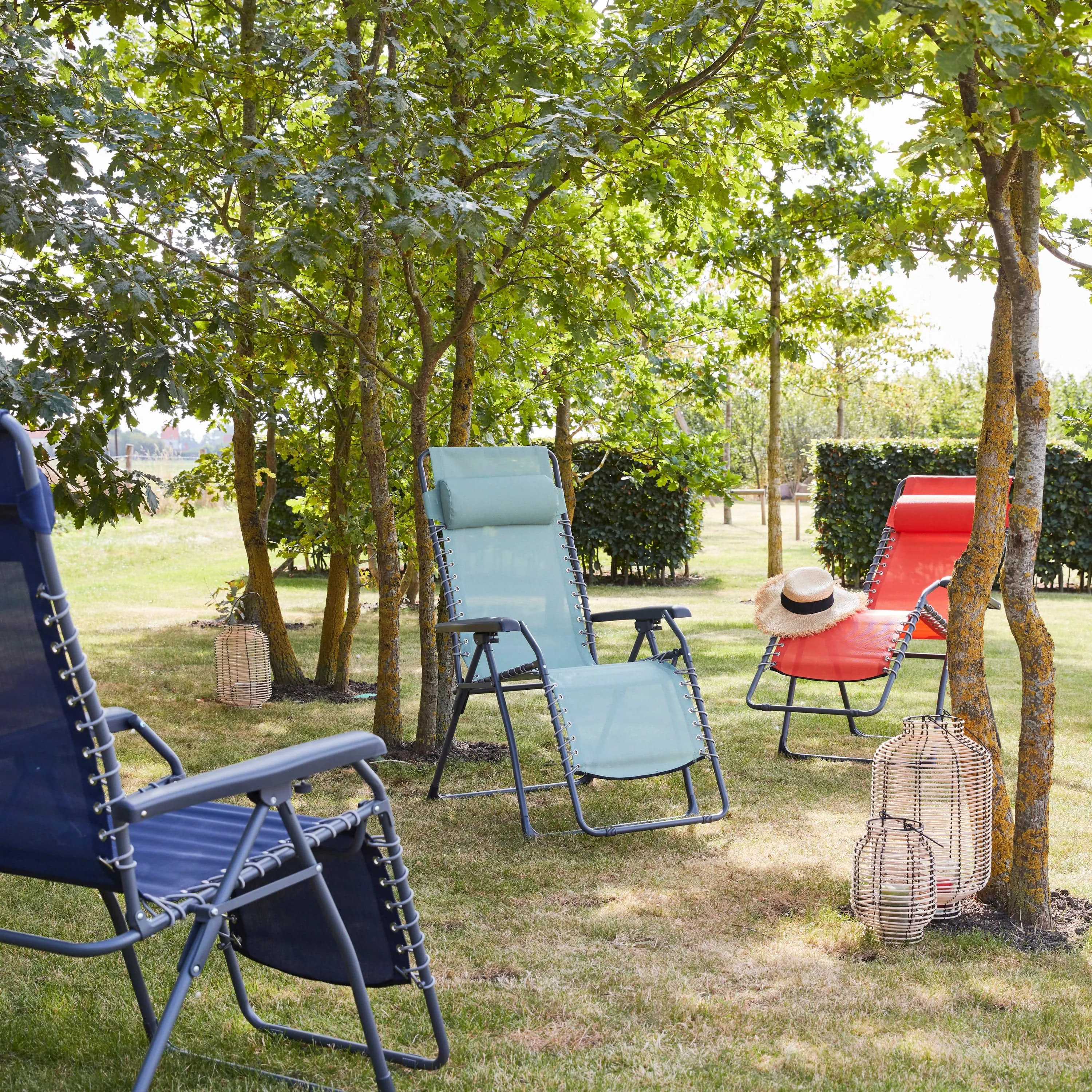 MULTIPLE RELAXATION ARMCHAIR in textilene, steel with green padded cushion