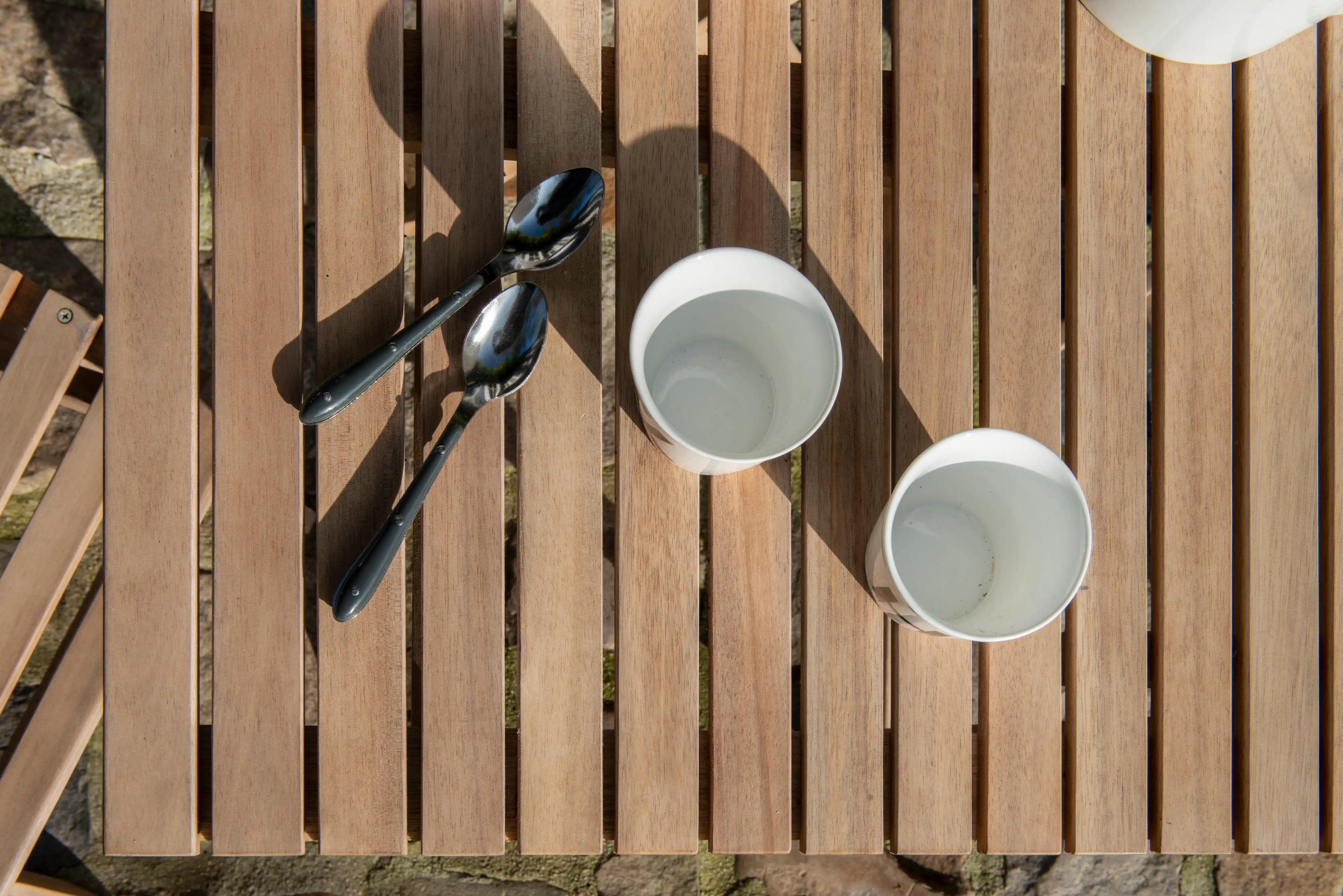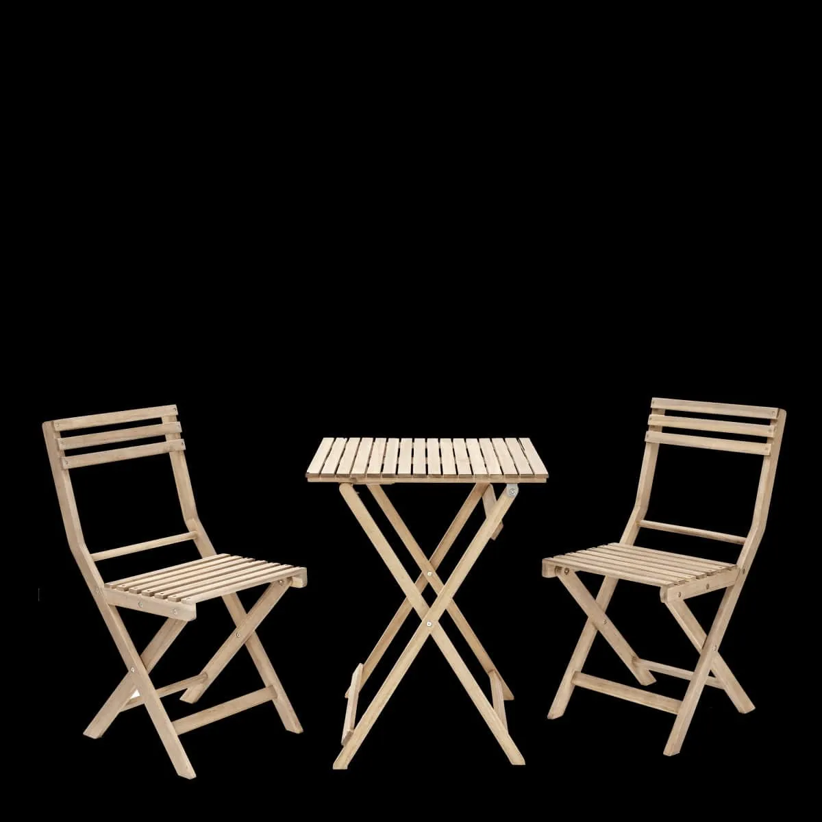 NATERIAL Solis table and chairs set in brown acacia 2-seaterSet ideal for occasional use even in small spaces such as balconies or small verandasFolding table and chairs to ensure maximum space savings when not in useFinishing oil leaves the wood with its natural blond appearance. Its environmental plus: Acacia is a living material, 100% recyclable. It is certified through the FSC label.