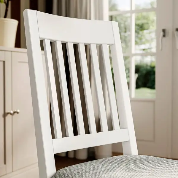 NÄSINGE dining series combines updated farmhouse charm with modern functionality. The slatted back chair with high backrest and soft seat with washable cover make life around the table comfy and relaxed.