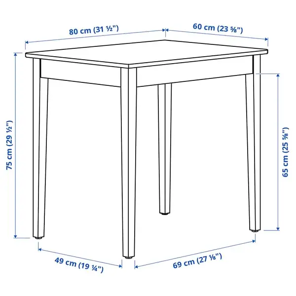 NÄSINGE dining series combines updated farmhouse charm with modern functionality. This 2-seat table with hardwood veneer top and hardwood chamfered legs adds coziness to smaller kitchens or living rooms.
