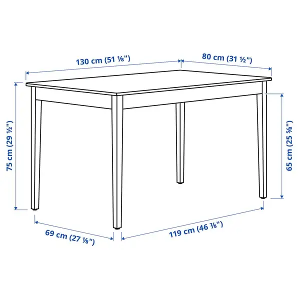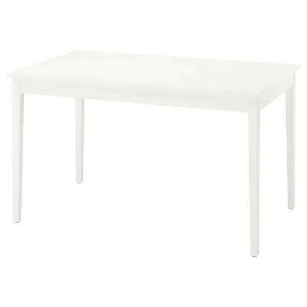 NÄSINGE dining series blends updated farmhouse charm with modern functionality. This white 4-seat table with a smooth melamine top and wooden chamfered legs is ideal for kitchens or living rooms.