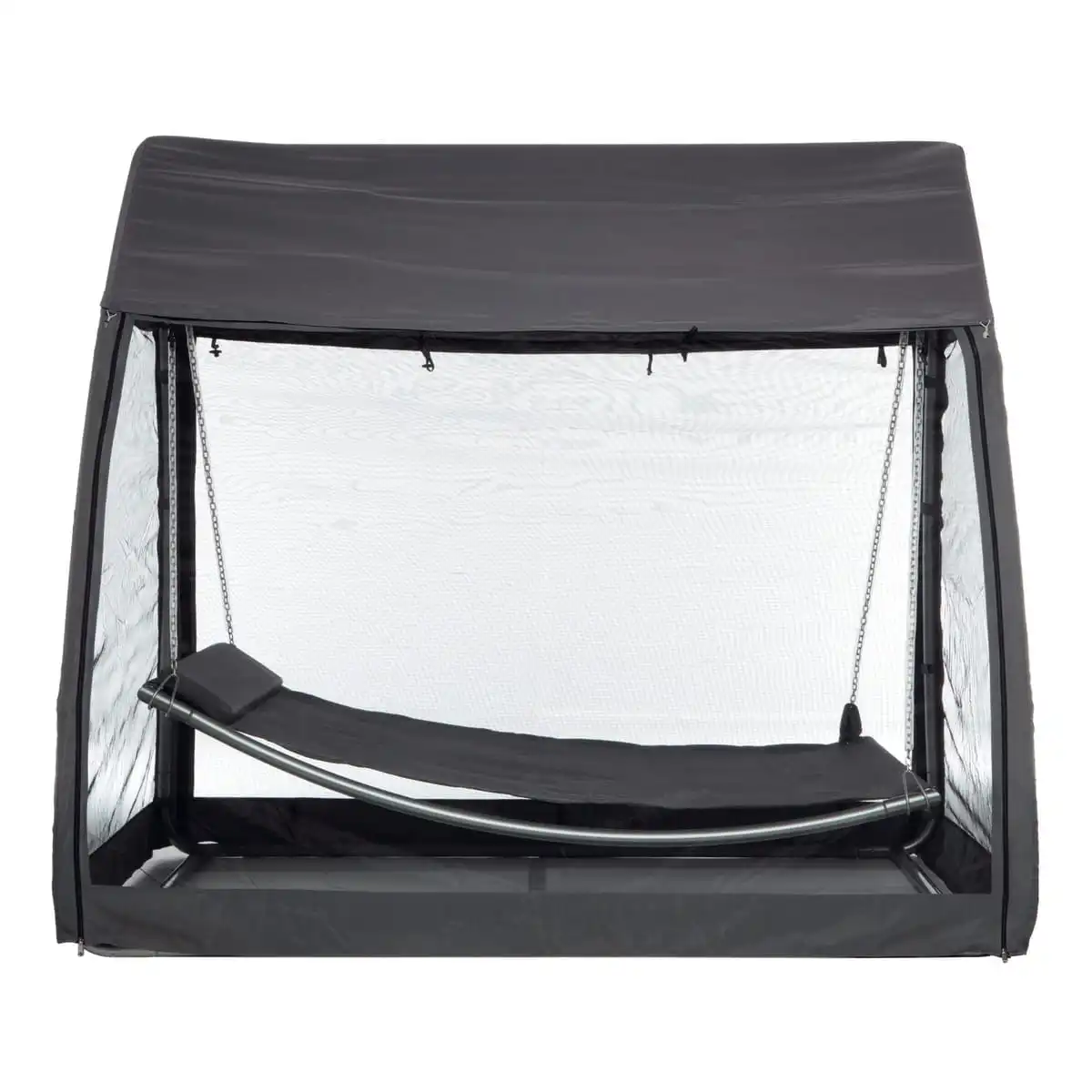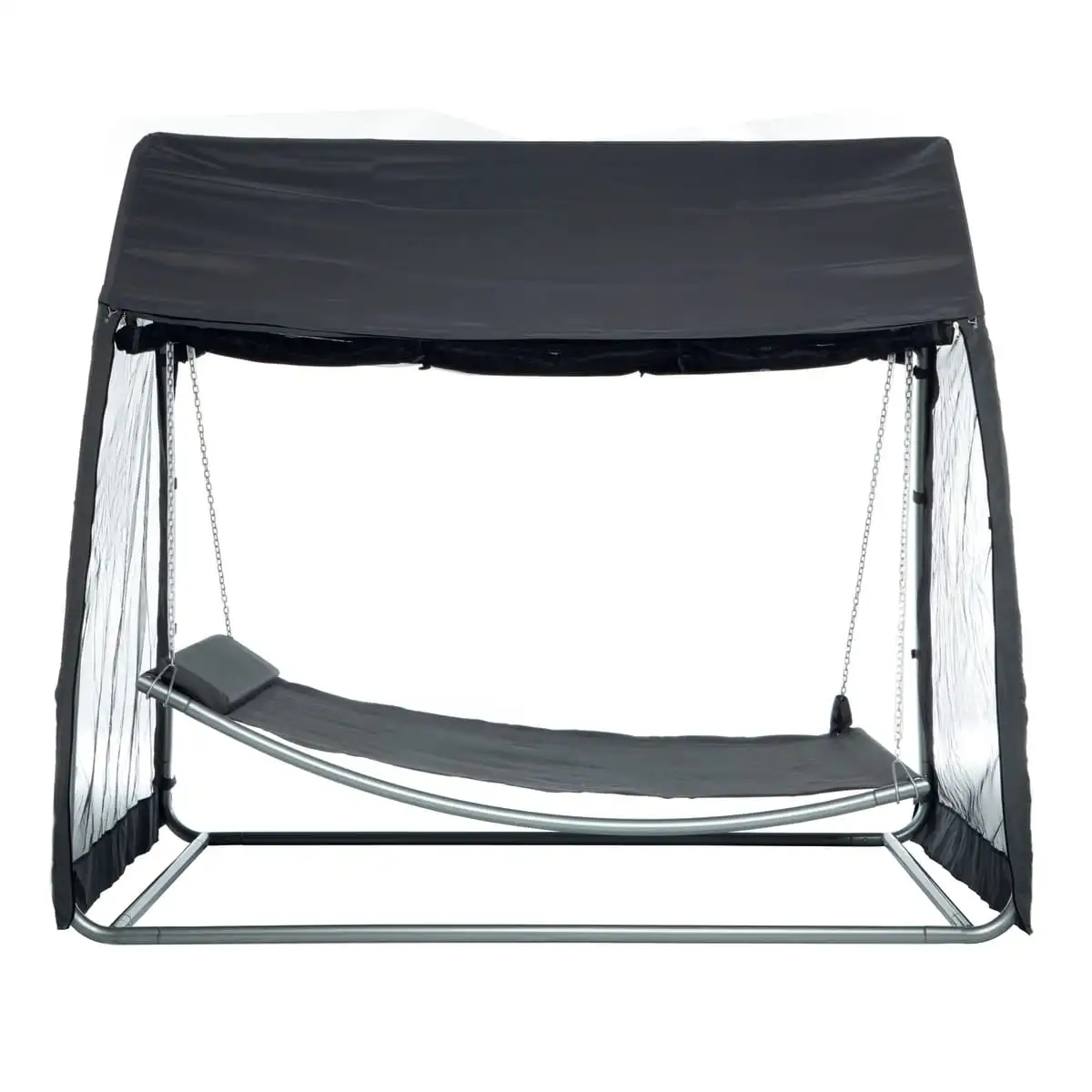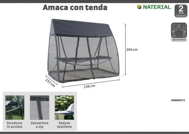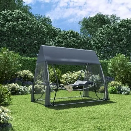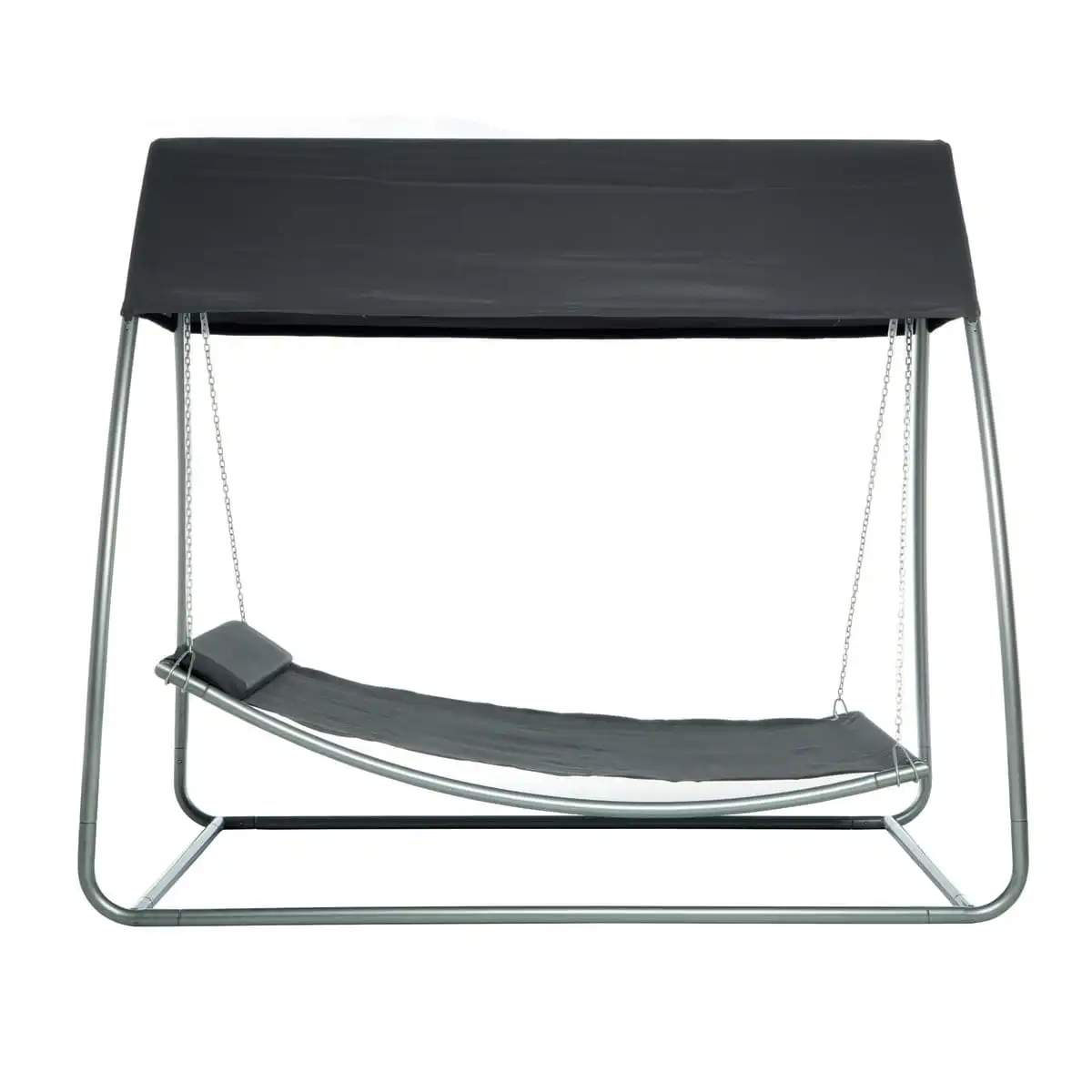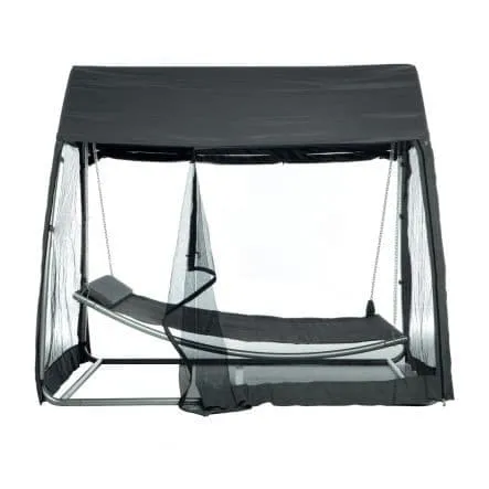 Hammock with steel frame gray canvasIdeal for creating a shady and relaxing area, protected from insects.The frame is lightweight but resistant to corrosion and weathering. It can be easily moved from one part of the garden to another, allowing you to choose between shaded or sunlit areas.