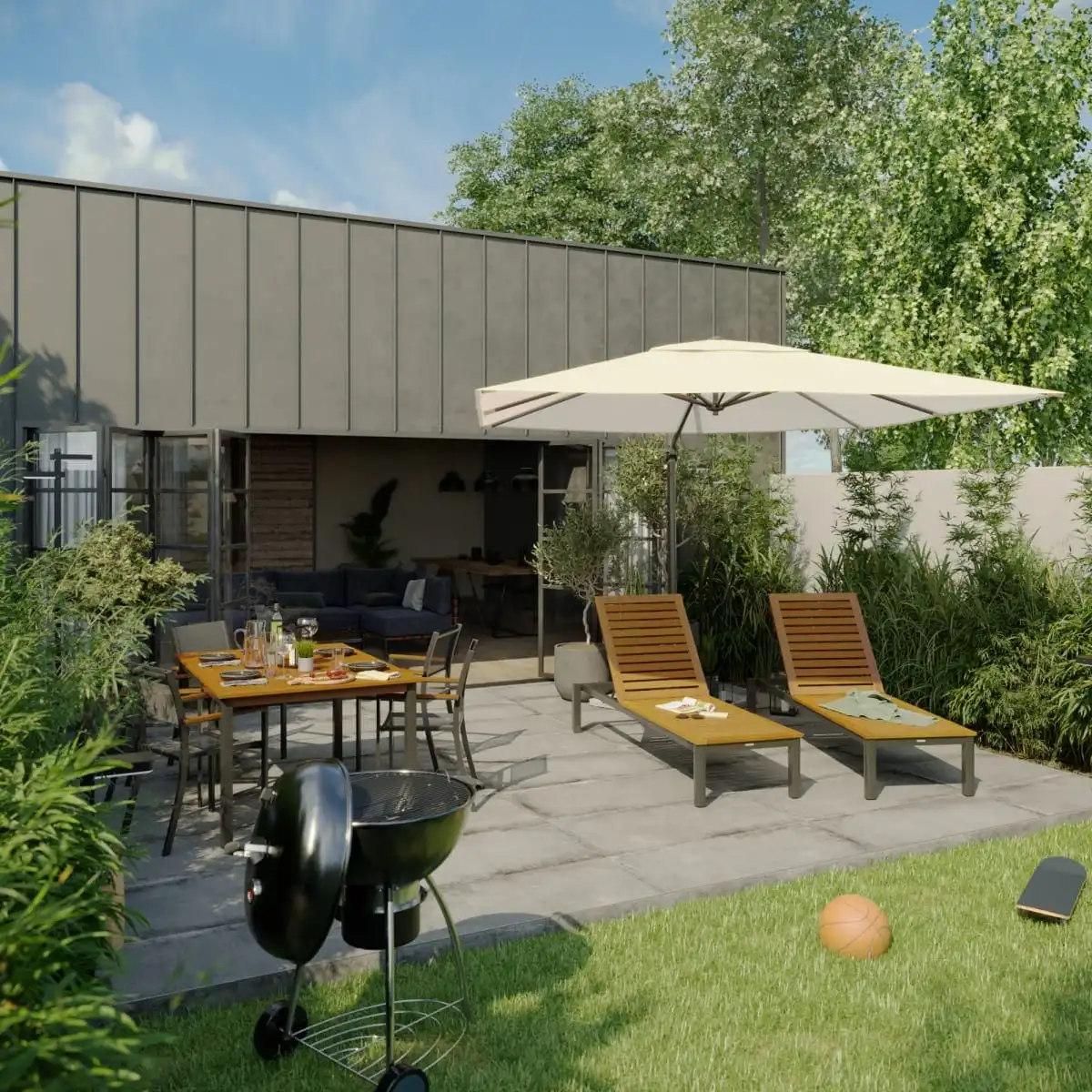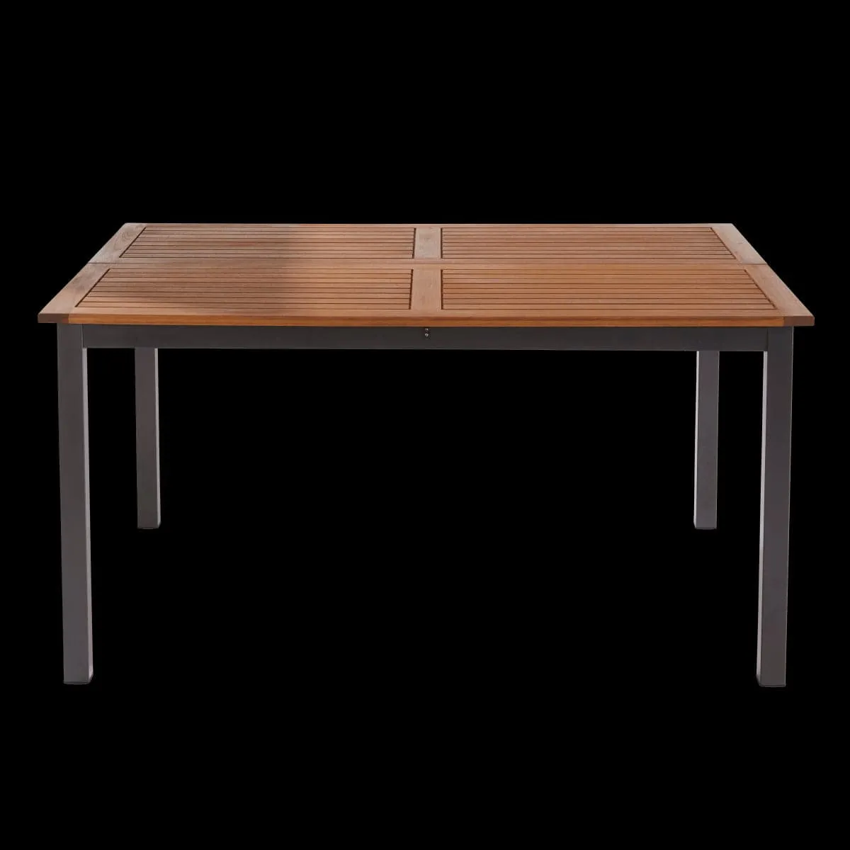 NATERIAL aluminum extendable garden table with brown eucalyptus top for 6 people 102/162.3x147cmIdeal for 4/6 peopleIts extension allows you to quickly switch from a rectangular table for 4 people to a square table to accommodate up to 6 people