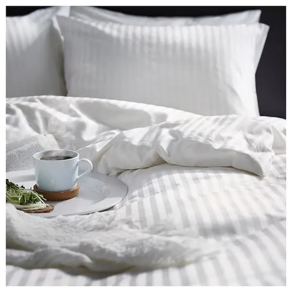 Duvet cover set in sateen with discreet stripes. Woven from cotton/lyocell which gives the fabric a wonderful lustre, absorbs moisture and feels soft against your skin.