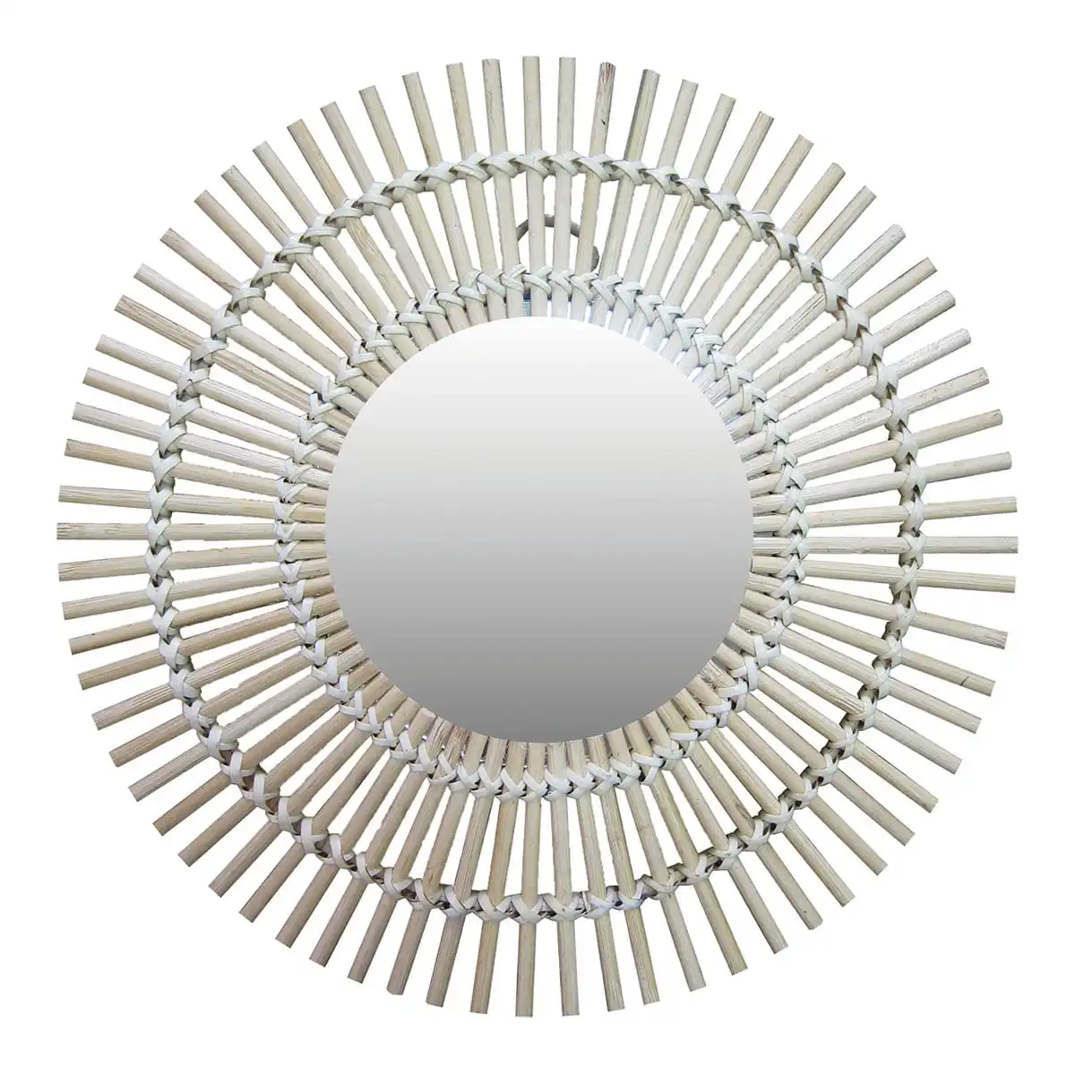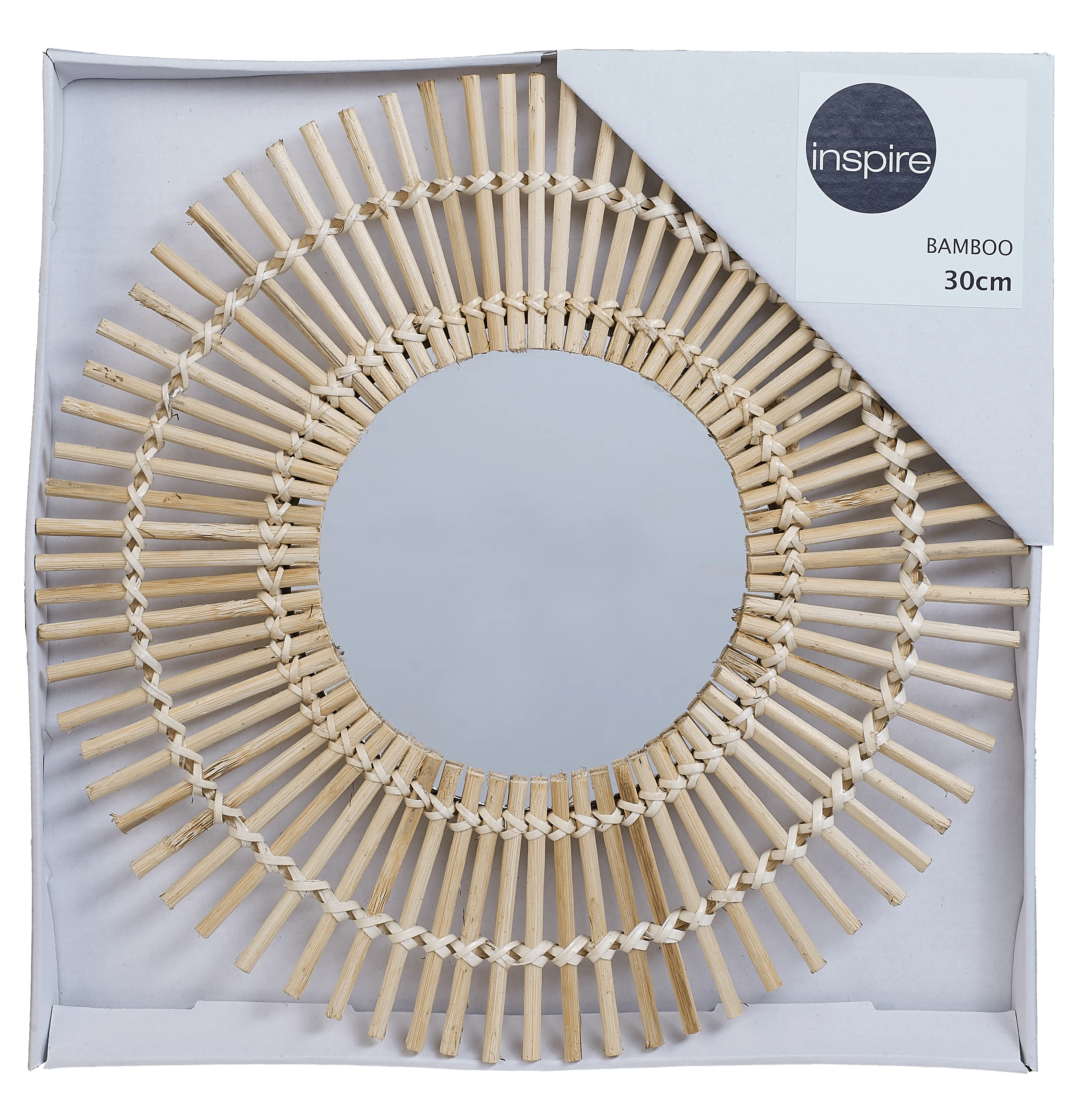 Natural bamboo mirror d.30 cmIdeal for mirroring and decoratingHis 'sun' shape brings light into your space
