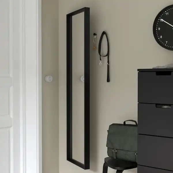 The timeless design works just as well in the bedroom as in the bathroom. Hang it vertically or horizontally – and if you mount the mirror with hinges you can hide keys and smaller things on the wall behind.