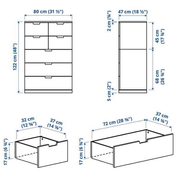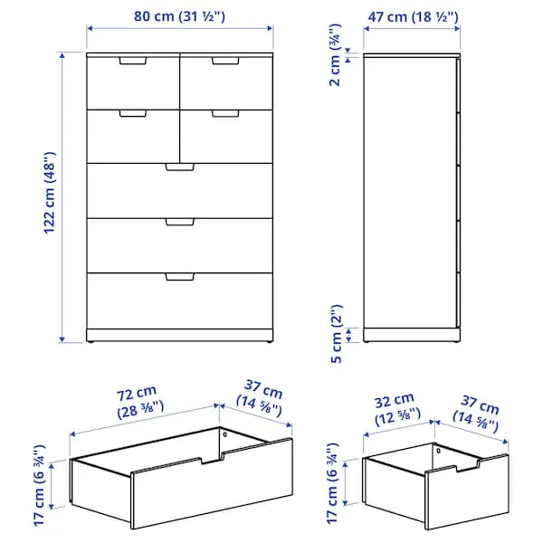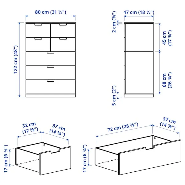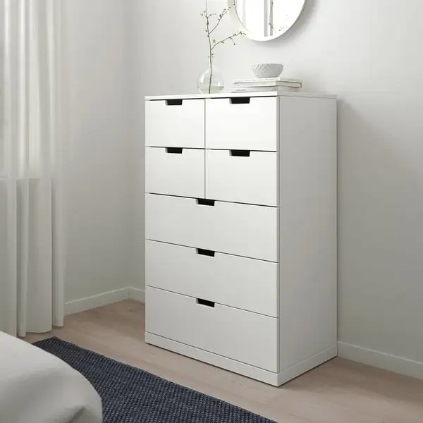 You can build NORDLI chest of drawers any which way – wide, low or in different heights to create the perfect solution for your space. The clean modern look is easy to place. Psst! Please attach to the wall.