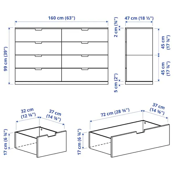 You can build NORDLI chest of drawers any which way – wide, low or in different heights to create the perfect solution for your space. The clean modern look is easy to place. Psst! Please attach to the wall.