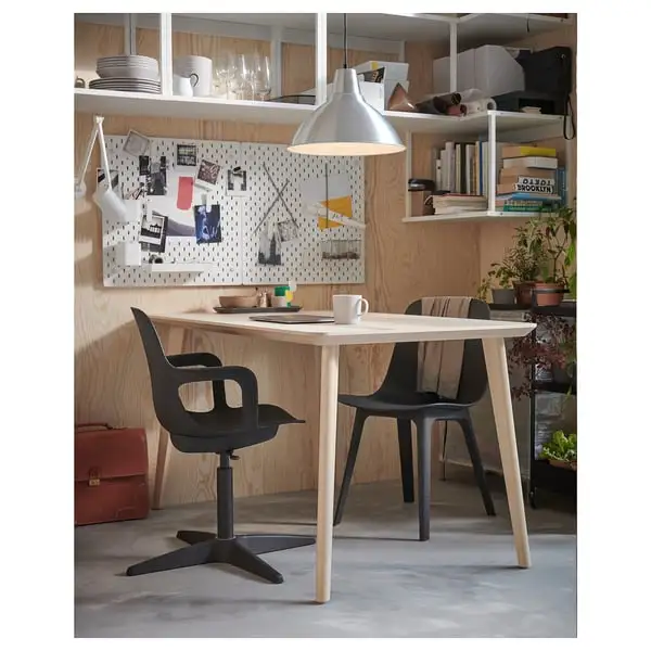 Simple design with good comfort. The bowl-shaped seat and rounded shape of the backrest make ODGER swivel chair comfy. Adjustable height and swivel allows you to find a sitting position that suits you.