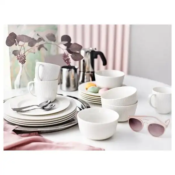 Decorative and simple. Festive and functional. Personal and easy to match with other dishes. It’s also in a material similar to bone porcelain and is slim and elegant, yet sustainable and durable.