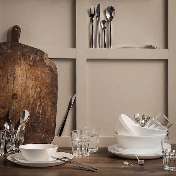 This tableware has the same look and feel as bone porcelain, but is made of tempered glass. This means that we can push the price down and you get an elegant and shiny product – at a lower cost.