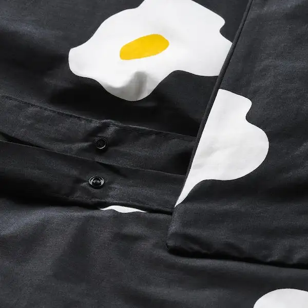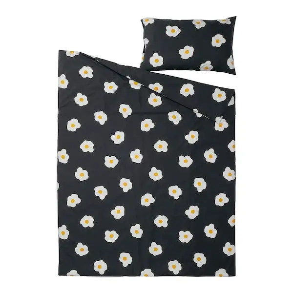 Is it a bed of flowers or sunny side up eggs? Hannah Wilcox designed ÖGONLOCKSMAL duvet cover set with a twinkle in the eye. Made of a soft cotton/viscose blend that breathes and has a fine sheen.