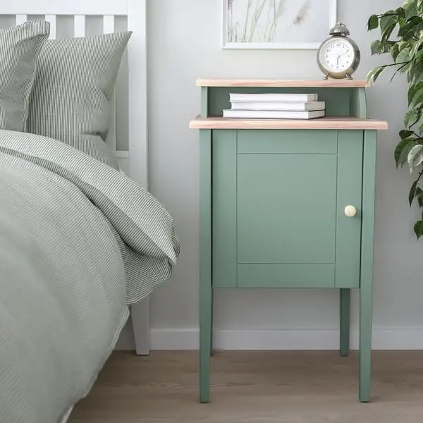 OLDERDALEN bedside table is inspired by traditional Scandinavian craftsmanship. Its generous form supports your pre-sleep rituals – from charging your phone to storing your books and magazines.