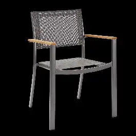 Chair with armrests without cushion made of aluminiolegno Oris NATERIAL colorIdeal for completing the decor of a table outdoors.Stackable, to ensure maximum space savings when not in useResistant to rust and deformation due to weathering, without losing lightness and practicality. Can be combined with tables from the Oris series.