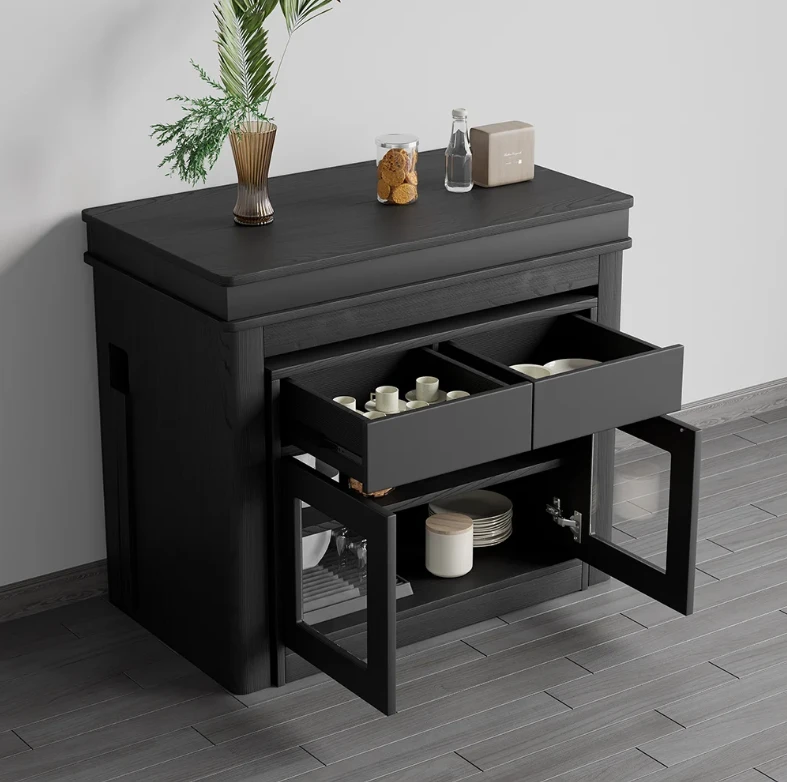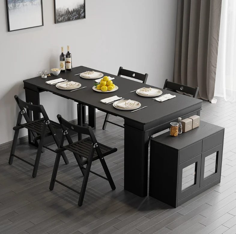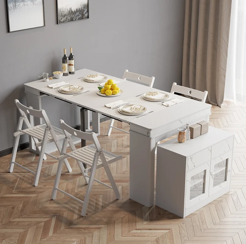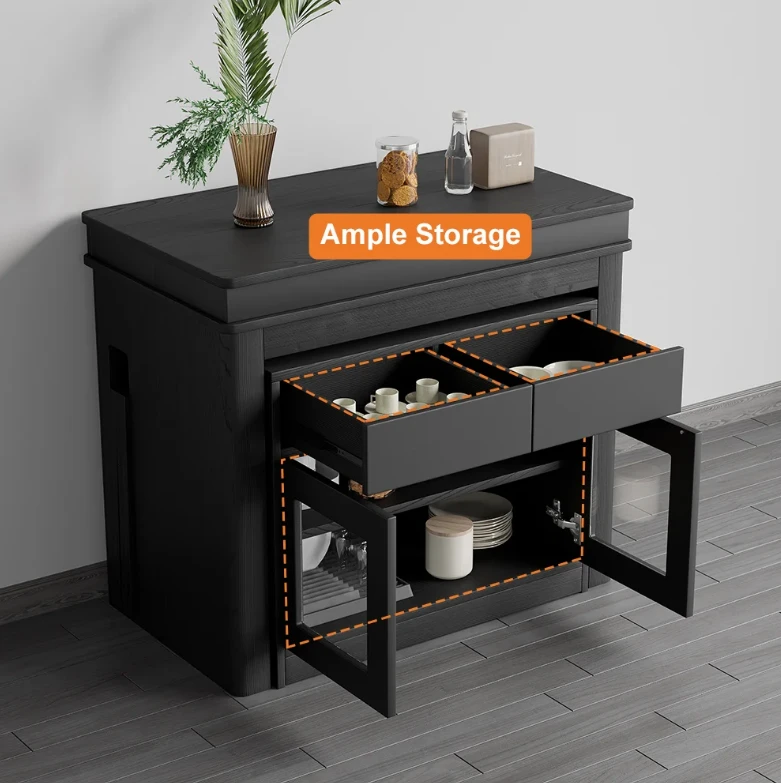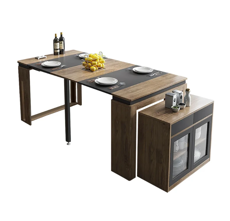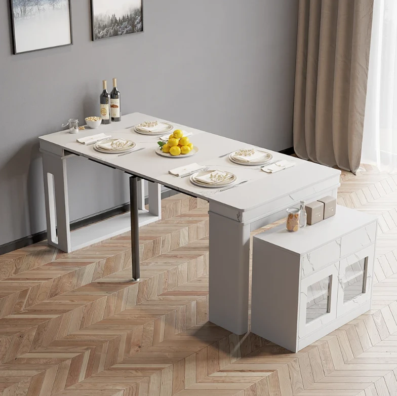 The Outdoor table is an ideal patio dining choice. Extending to seat 10 people, this table offers convenience and multi-functionality for large dinner parties. It is equipped with self-storing extensions and a storage bar that rotates 360 degrees to act as support and remain sturdy under lots of weight. Perfect for a flat outdoor patio or wood deck, this table has a durable water and weatherproof high-pressure laminate finish and powder coated steel legs. Seats 10.