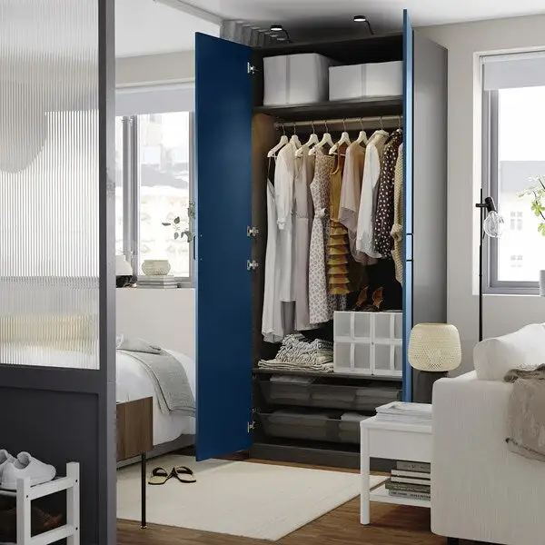 PAX / FYRUDDEN wardrobe combination, dark grey/blue, 100x60x236 cm