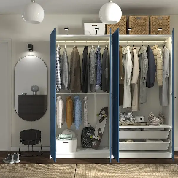 PAX / FYRUDDEN wardrobe combination, white/blue, 200x60x201 cm