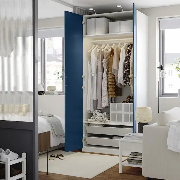 PAX / FYRUDDEN wardrobe combination, white/blue, 100x60x236 cm