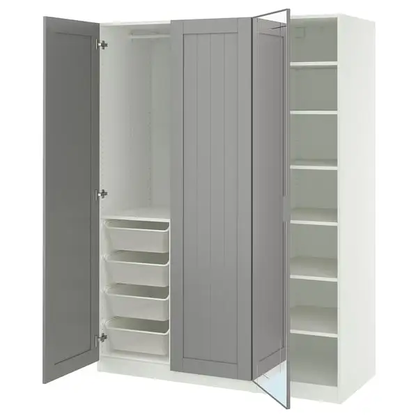 PAX / KAMMARTORP/GULLABERG wardrobe combination, white/mirror glass grey, 150x60x201 cm