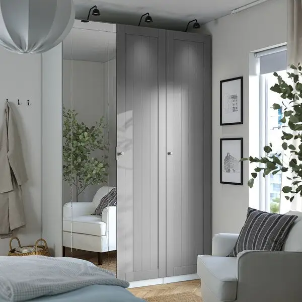PAX / KAMMARTORP/GULLABERG wardrobe combination, white/mirror glass grey, 150x60x236 cm