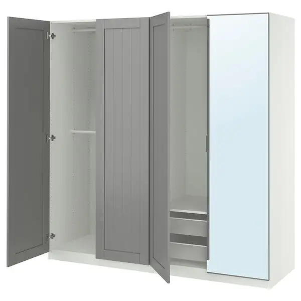 PAX / KAMMARTORP/GULLABERG wardrobe combination, white/mirror glass grey, 200x60x201 cm