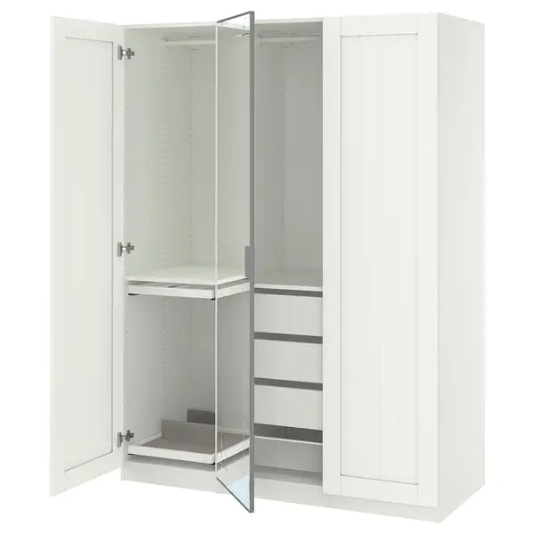 PAX / KAMMARTORP/GULLABERG wardrobe combination, white mirror glass/grey white, 150x60x201 cm