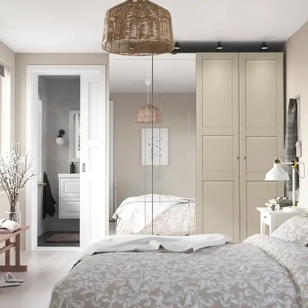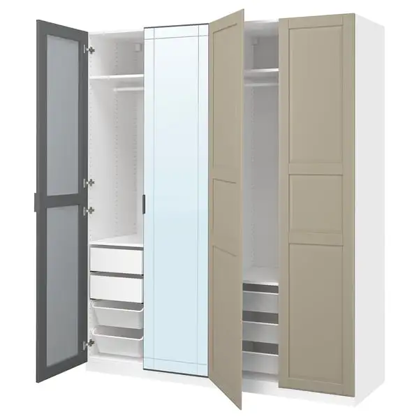 PAX / KAMMARTORP/TYSSEDAL wardrobe combination, white mirror glass/grey grey-beige, 200x66x236 cm