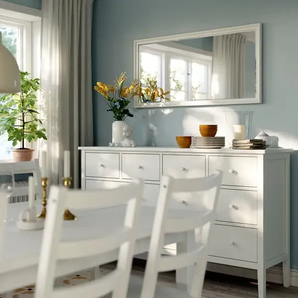 PINGSTSYREN mirrors with solid-pine frames bring natural elegance and timeless style to the bedroom, hallway and living room. Choose classic white for a brighter feel or bold yellow for a cheerful touch.
