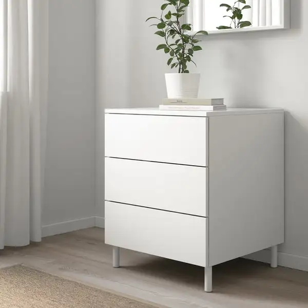 PLATSA chest of 3 drawers, white/Fonnes white, 60x57x73 cm