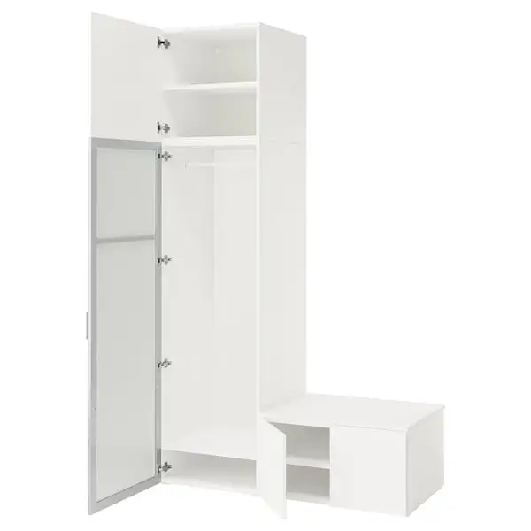 PLATSA - PLATSA Wardrobe with 4 doors, white STRAUMEN mirror glass /FONNES white, 140x57x241 cm