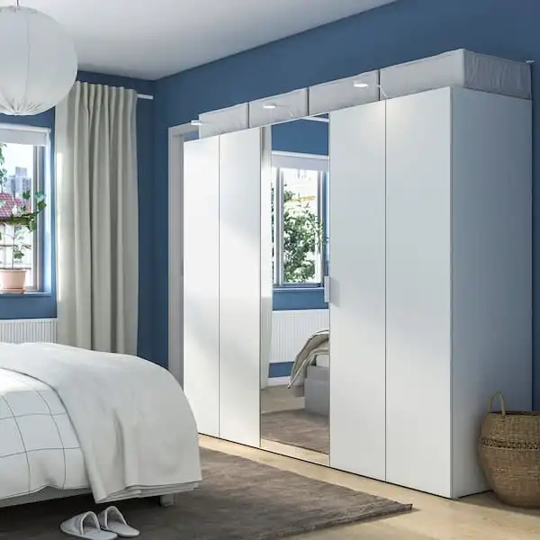 PLATSA - PLATSA Wardrobe with 5 doors, white STRAUMEN mirror glass /FONNES white, 220x57x181 cm