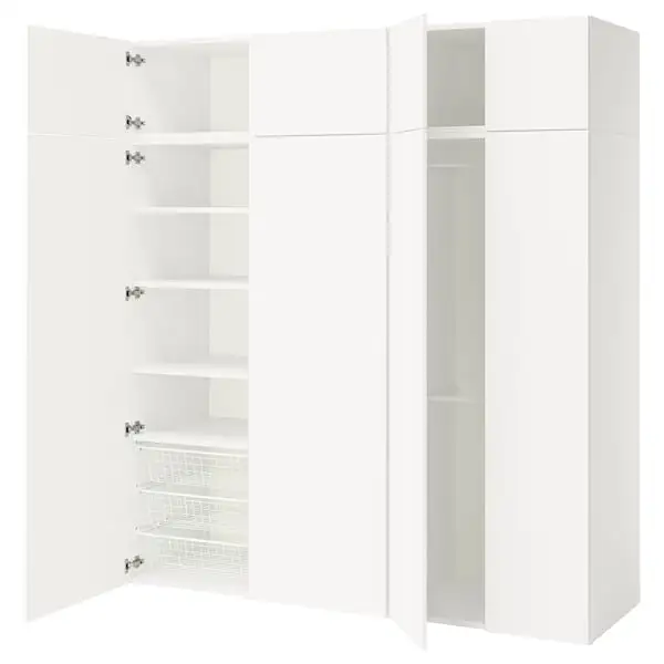 Build your PLATSA storage as you want it – high or low, under a sloping ceiling or along an entire wall. It assembles in minutes with a simple “click”. Finish with doors and interior organisers as needed.
