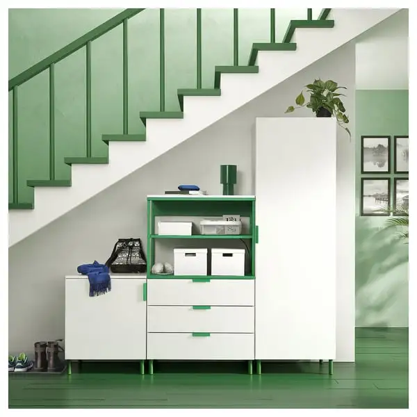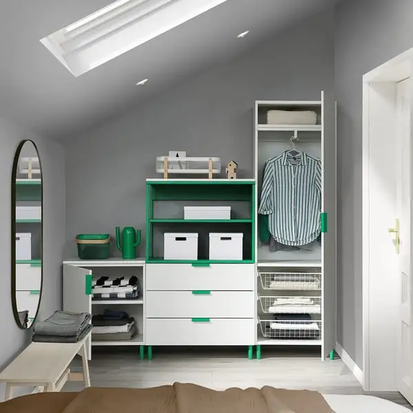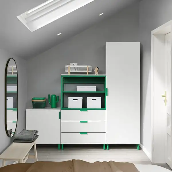 PLATSA series creates storage possibilities, even in the trickiest of places. The modular parts can be built high, low, under sloping ceilings or staircases, around a window or even along an entire wall.