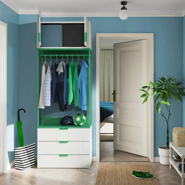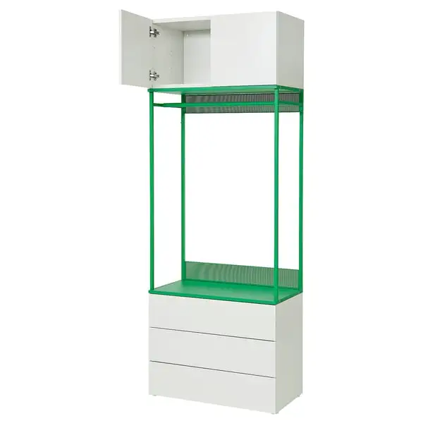 PLATSA wardrobe with 2 doors+3 drawers, white/Fonnes green, 80x42x221 cm